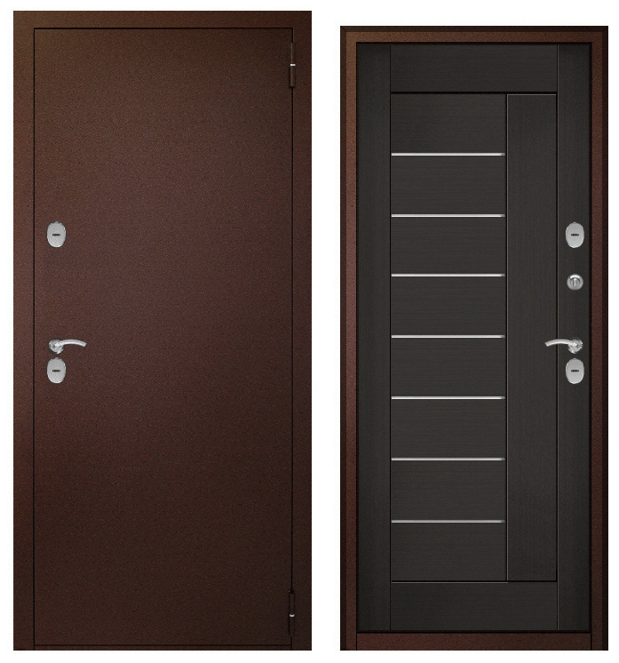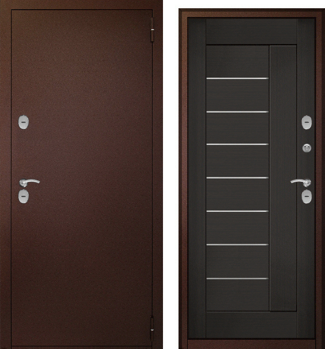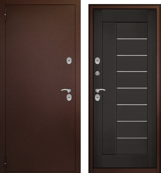 Дверь металл ТермоБокс (медь,ЦАРГА 22мм+молдинг, ПВХ Венге, 2 петли, ф-ра хром)