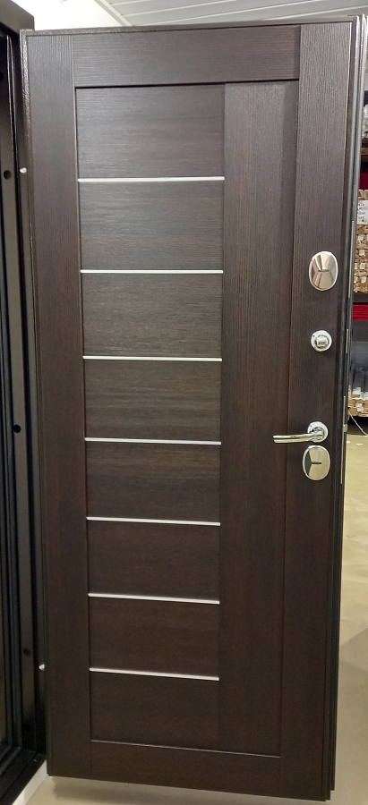 Дверь металл ТермоБокс (медь,ЦАРГА 22мм+молдинг, ПВХ Венге, 2 петли, ф-ра хром) (2050*960, правая)