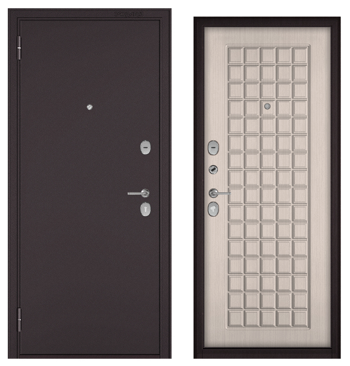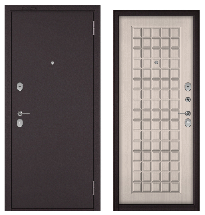 ФЭМЕЛИ ЭКО, МДФ ларче бьянко E-112, 2 замка (2050*860, левая, Ночная задвижка, букле шоколад, хром)