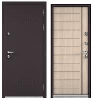 ТЕРМОРАЗРЫВ (СПЛИТ) MP, тисн.Р-5, МДФ ясень ривьера крем 10ТС-136 (2050*880, левая, нержавеющий порог, букле шоколад, хром, термо)