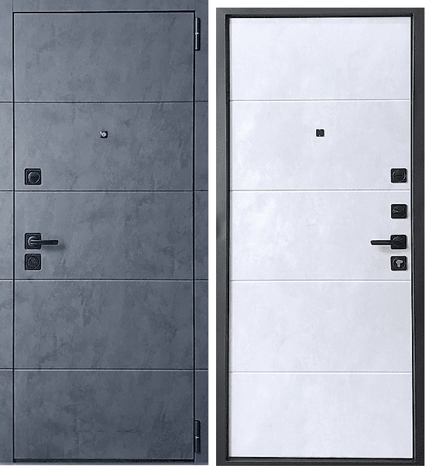 Тульские двери Б80 ЛОФТ НОВ,черн.муар, МДФ Бетон графит/МДФ бетон снежный, два контура, черн фур (2050*960, правая)