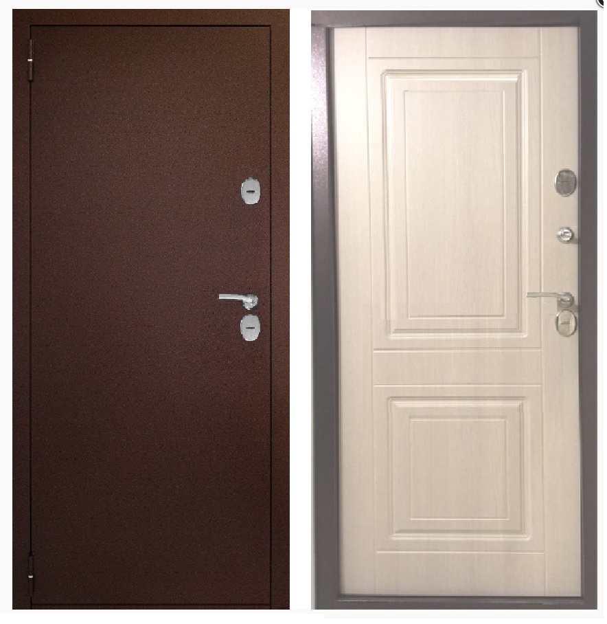 Тульские двери Б35 Термо СИП (медь, МДФ 12мм лиственница беленая, 2петли,1,2мм, хром)