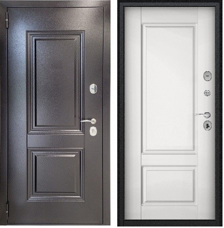 Тульские двери Термо Винтерфел (букле черный+ШТАМП, МДФ12мм Белая ,2 петли, 1,5мм сталь, хром) (2050*860, R, правая)