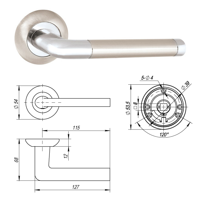 Ручка дверная 0883 (REX TL) (мат.никель/хром, квадрат 140 мм)