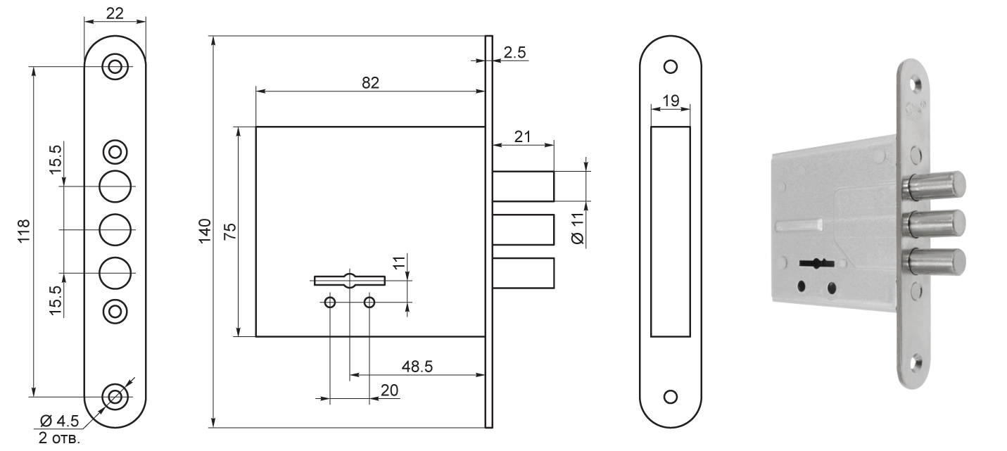 Предназначен для установки в деревянные и металлические двери толщиной 40-50 мм, а также в металлические шкафы.