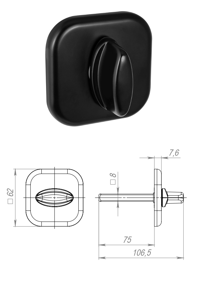 Ручка поворотная BKW8x75.K.XL62 BL-24 (квадрат, черный)