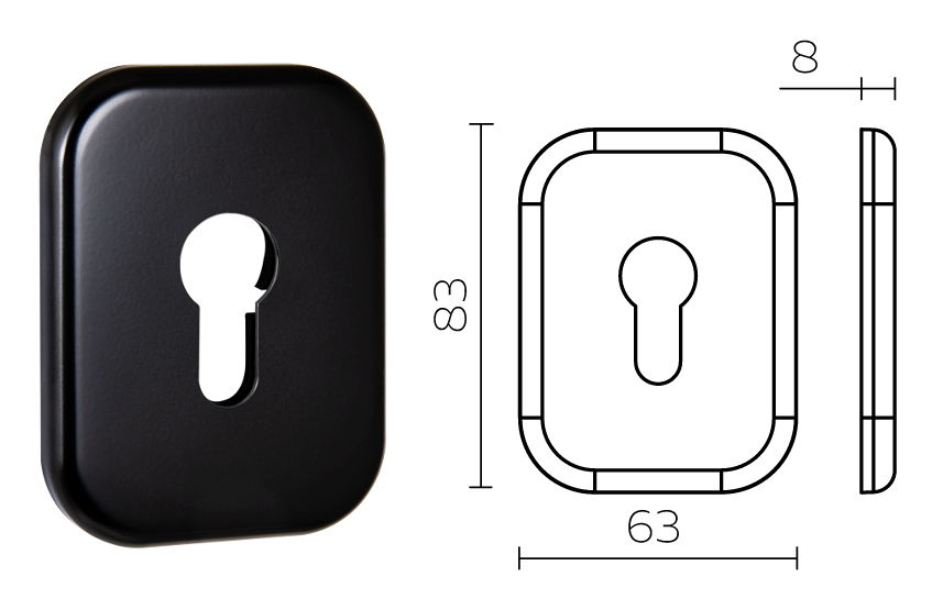 Накладка на цилиндр ESC.C.XL/K.486 SQ XL BL (прямоугольная, черный)