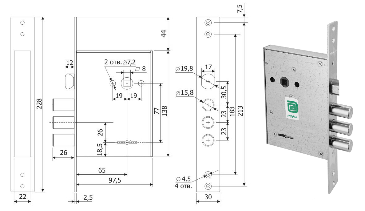 Замок врезной сувальдный Гардиан 3011 (ДЛИННЫЙ КЛЮЧ)