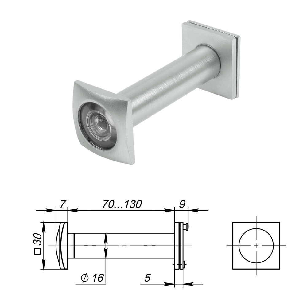 Глазок DV-Q 4/130-70/Z (VIEWER 4 DVQ) SSC (квадрат, сатинированный хром)