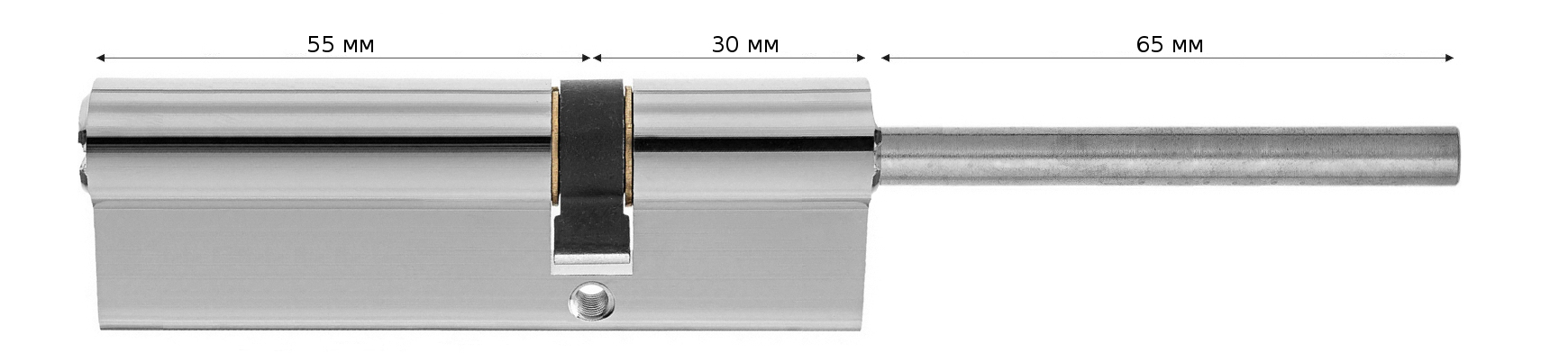 Цилиндровый механизм 50*10*25 мм (ключ/шток, хром, БЕЗ вертушка)