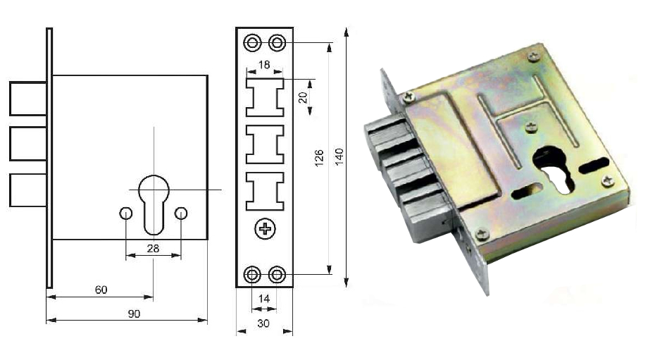 Описание: Замок врезной цилиндровый, без цилиндра, рекомендован для установки в металлическую дверь с толщиной профиля не менее 60 мм.