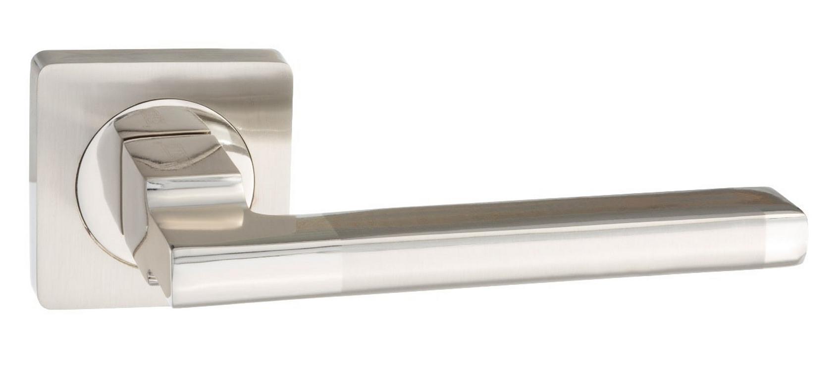 Дверная ручка B2B 514-02 на квадратной розетке (никель матовый/хром блестящий)