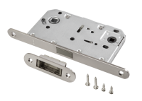 Защелка сантехническая РЕНЦ с корпусом из оцинкованной стали, межосевое расстояние 96 мм, бэксет 50 мм, снабжена отверстиями под стяжные винты.