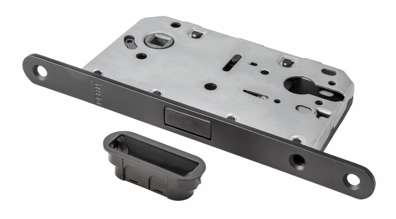 Замок врезной магнитный под цилиндр РЕНЦ (никель матовый, арт. INLBM 5085 PL SN)
